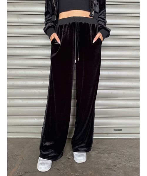 ■detail 程よく光沢感のあるカットベロアを使用したストレートパンツ。右後ろポケットにワンポイントで入れた同色のロゴ刺繍にはキラッと光る細かいラメの入った糸を選び、馴染み過ぎないようにしました。 サイドラインには同色レースを使用し、抜け感と女性らしさを演出。 肌が透けすぎず、でもレースが綺麗に見えるように細かく調整したライン幅は拘りポイントの一つです。 脇レース部分には下着が隠れる程度まであて布を付けているので安心して履いて頂けます。 ボディラインを拾わず程よくカバーしてくれるストレートシルエットは美脚効果も◎ 合わせるシューズによって雰囲気もガラッと変わります。 ミュール合わせでレディライクに、スニーカー合わせでカジュアルダウンしても◎ ツヤのある素材と、すとんと落ち感のあるシルエットが、コーデに取り入れるだけでこなれた雰囲気に仕上がります。 (125081010001とSET UPで着用可能) 【生地感】 透け感:なし 裏地: あり 伸縮性:あり 生地の厚さ:普通 <おすすめ便利機能> ▼商品のお気に入り登録▼ 商品ページ内のハートマークをクリック! 完売カラーの再入荷や、 ラスト1点の通知、 お得なお値下げの通知を受ける事ができます。 ▼ブランドのお気に入り登録▼ 新商品や再入荷など、 ブランドのお得な情報をいち早くお知らせします。 ぜひご活用ください!