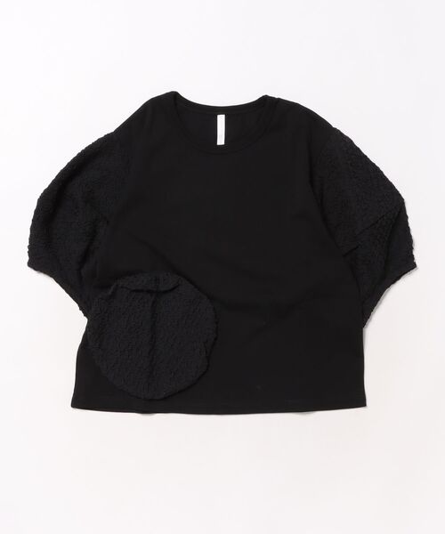 袖口にふんわりと丸みを持たせたバルーンスリーブとフロントに立体的に施されたサークルが目を惹く1枚。気になる二の腕カバーにもなる優秀アイテムです♪デイリー使いにピッタリの技ありなデザインTシャツを是非お試し下さい。