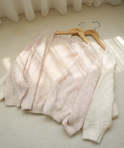 ■デザイン透明感たっぷりなキラキラニットカーディガン♪ゆるっと編まれた抜け感のある一枚です。キラキラ輝くフィルムが華やかさ満点◎オーバーサイズのころんとしたシルエットで体形や骨格を選ばず着ていただけます!様々なアイテムと合わせやすいベーシックなWhiteと、特別感のある柔らかいMIXカラーのPinkをご用意しました。デイリー使いやおでかけ、デートに♡※Pinkは色の粒が入った糸を使用しており、粒が目立つものがございます。不良ではございませんのでご了承ください。■おすすめコーディネートキャミソールやビスチェ、キャミワンピースとのスタイリングがおすすめです。natural cami onepiece3やflowerのレースインナーと合わせてPinkのMIXカラーを主役にしたコーデをお楽しみください♪■flower/フラワー「love&joy」をコンセプトに、商品に愛を込め、お客様に楽しんでいただけるような、ナチュラルでガーリーなアイテムを提案していきます。【お買い物を上手にお楽しみいただくためのPOINT2つ】◎ 購入ボタン横の ♡ (ハートマーク)をクリック! 完売カラーの再入荷通知、残り1点の通知、セールの通知を受け取れます。 (クリックまたはタップで商品のお気に入り登録♪)◎ ショップのトップページにある ♡ (ハートマーク)「お気に入りショップに追加」をクリック! 新商品や再入荷等、いち早くブランドのお得な情報を受け取れます。 (ブランドのお気に入り登録♪)