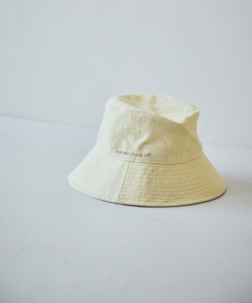 生地に洗い加工を施したこなれた風合いが魅力ーーー【素材】コットンベースのカジュアルな風合いの生地を使用。【デザイン】オーソドックスなバケット型のハット。顔料染色など特殊な染色の生地に製品洗い加工を施すことで、使い込んだようなラフな雰囲気を持たせました。同色であしらったロゴ刺しゅうがさり気ないアクセントに。《ポイント》・抗菌防臭汗帯使用ーーー【スタイリング】やや広めのダウンブリムがほど良い女性らしさを持たせてあり、デニムスタイルからカジュアルでシンプルなワンピーススタイルなど、幅広いスタイリングに取り入れていただけます。ーーーハット 刺しゅう 製品洗い 抗菌防臭ーーー
