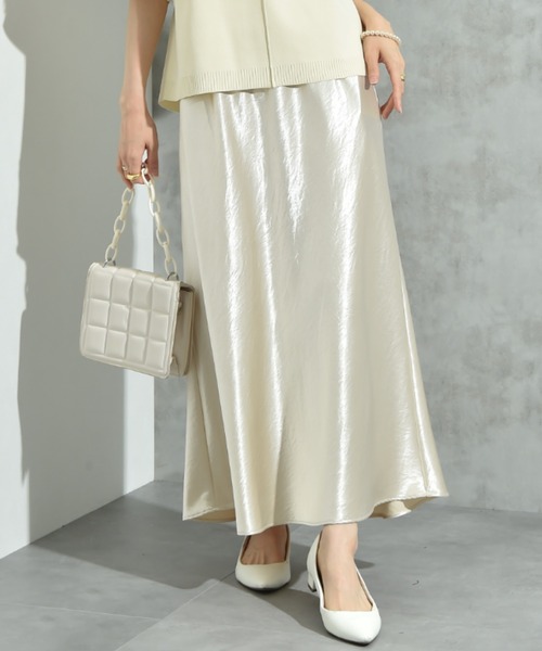 上品な光沢感がポイント 大人のサテンカート ヘビーサテンとは通常のサテンよりも糸の番手が太く、高密度に織られているため、しっかりとした肉感と適度はハリ感が特徴です。また上品な光沢が大人な印象に演出してくれるスカート。腰回りの広がりを押さえ、キレイに落ちるフレアーがすっきりしたスタイルに決まります。キレイ目なニットやブラウスに合わせた女性らしいスタイリングや、デイリーなカジュアルスタイルのゆるいスエット・Tシャツとも相性抜群◎ きれい目から大人カジュアルまでスタイリングのバリエーションも自由自在。様々なシーンで活躍してくれるスカートはワードローブにプラスしたいアイテムです。 【取り扱い】ご自宅でイージーケア(手洗い)ができます。 INTERPLANET/actuel(インタープラネット/アクチュエル) ・concept いつだって私らしく、私自身のスタイルが決まる。。。時代や年齢に媚びない『らしさ』を纏って生きる女性へ。旬なベーシックと抜け感のあるカジュアルをMIX。そんな大人カジュアルコーデを提案します。 ・お気に入りの登録について ショップ、ブランドのお気に入り登録でクーポンやタイムセールの通知などお得な情報を受け取ることができます♪また、気になるアイテムのお気に入り登録でセールや再入荷の通知など受け取ることができます。