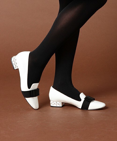 【Soareak秋物 -Autumn 1st Style Item-】 Soareakらしいリボンをあしらったローファー♪ ローヒールのフェミニンなトラッドシューズは、ヒール部分に施された大粒ビジューが旬小物な雰囲気を高めてくれる1足。 女っぽさを生むビジューに、洗練された大人なニュアンスを醸しだすホワイト×ブラックのバイカラー、モダンなたたずまいが魅力的なオールブラックの2色をご用意。デイリースタイルにプラスしたらレディな印象を、パーティスタイルにプラスしたら程よい華やかさと品ある足元に。 ※掲載商品はサンプルとなっておりますので予めご了承ください。