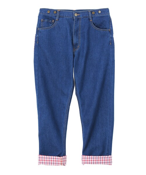 中肉の素材を使用したフルレングスパンツ。ポケットや裾にチェック柄の素材をパッチワークしたアイテム。パッチワークを施した部分もインディゴに染まり、こなれ感のあるパンツです。レザーパッチがアクセントに。NEサスペンダーと合わせてコーディネイトできるウエストボタンの仕様です。この製品は独特な風合いを出すため、製品加工を行っております。1点ごとにサイズや風合い等、特徴が異なりますのでご了承ください。Torso:H163.5 B80 W58.5 H86 着用サイズ:02サイズ