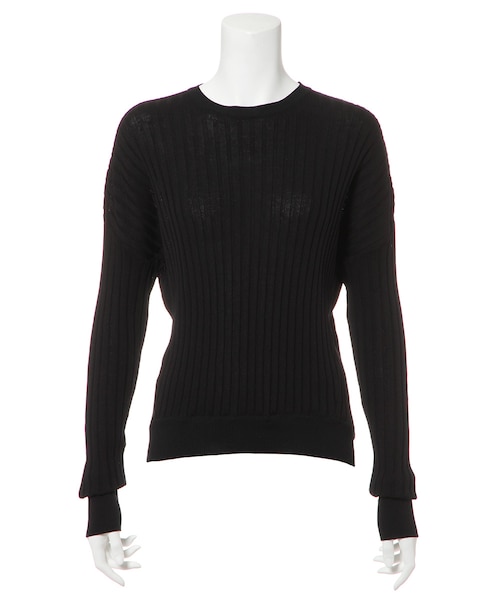 <雑誌掲載商品>ドロップショルダーでワイズが広めのワイドリブニット。アームが細めになっているのですっきりした印象。シンプルでコーディネートしやすく、薄手のニットなので秋口から活躍します。長めの袖がルーズで可愛い。同シリーズのボトムスとのセットアップもおすすめです。(VOGUE)(8月号)(P118)
