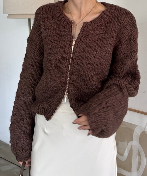 【CAPRICIEUX LE'MAGE×gemeil コラボアイテム】Wジップ スラブカーディガン ニットトップス、カーディガンと2WAY仕様で、長い期間楽しめる1着 -デザイン- たぽっと丸みのある袖がポイント。全体的に丸みのあるシルエットで、女性らしい印象を演出します。 ヒップにかからない丈感で、スタイルアップ効果も期待できます。 首元や袖、裾はリブ切替でメリハリのあるデザインです。袖をまくりたぽっとさせて着るのも可愛いです。 Wジップ仕様で、裾をウエスト位置まで開けて抜け感を出す着こなしがおすすめ。 生地は独特の凹凸感や杢調の風合いがあるスラブ素材を使用しており、ざっくりとした質感が魅力です。 -スタイリングポイント- ・ワイドパンツと合わせで大人カジュアルなスタイリングに ・女性らしくマキシスカート合わせもおすすめ ********************** 透け感:あり 裏地:なし 伸縮性:あり 光沢感:なし ********************** 【洗濯方法】 手洗い可能 ※この製品は、糸及び編組織の性質上、引っ掛け・引っ掛かり易い性質をもっております。 着用時にベルト・バッグ・アクセサリー・周囲の壁など、表面の粗いものとの摩擦や、引っ掛かりにご注意ください。 ========================== 【お気に入り登録でお買い物をもっと便利に楽しく♪】 ・「商品のお気に入り登録」で・・・ ラスト1点や再入荷の通知が届きます。登録して頂いた商品だけが対象となる、あなただけのタイムセールが開催されることも! ・「ブランドのお気に入り登録」で・・・ 新商品や再入荷など、いち早くブランドのお得な情報を 受け取ることができますので、ご登録をおすすめします! ==========================