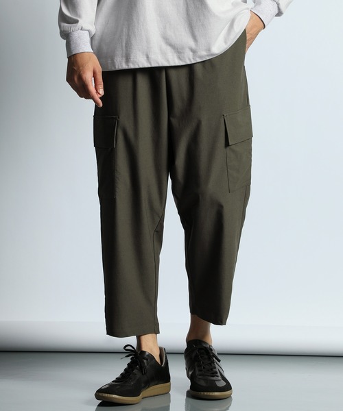"美シルエット、快適カーゴパンツ" 【生地】 縦・横・斜め全方向(360°)にストレッチし、肌にしっかりと馴染む高密度ライトポンチを使用。 布帛のような張りがある軽量ポンチ生地で、カジュアルなデザインでも立ち感の良いシャキッとしたソリッドな生地感も特徴のひとつです。 また、程よくハリがあり型崩れしにくく、ストレスを感じさせない抜群の穿き心地と肌触りをご提供いたします。 【デザイン/ディテール】 膨らみのあるリラックスシルエットとカーゴデザイン、クロップド丈をミックスしたNEWMODEL。 カーゴポケットのマチを無くすことでボリュームを抑えて綺麗なシルエットに仕上げました。 ワイドなシルエットと360°ストレッチする生地でノンストレスな穿き心地をご提供いたします。 ※サンプルを着用しておりますので、実際の商品と仕様、加工、サイズが若干異なる場合がございます。 ※撮影環境による光の当たり具合やパソコン・スマートフォンなどの閲覧環境によって、実際の色味と異なって見える場合がありますので予めご了承ください。 ※商品の色味は商品単体で撮影した画像をご参照ください。 品番:256809 P016EC