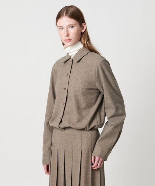 やや短めの着丈に、丸みのある衿のバランスをポイントにした、シャツ。クラシカルな雰囲気のウォーム感のあるツイル生地が、上品な印象です。ぴったりしすぎない身幅を持たせたシルエットが、ジャケットのような雰囲気を醸し出します。裾のドローストリングでシルエットを調節でき、合わせるボトムスによりアレンジができるのも魅力。同シリーズのスカートとセットアップコーディネートもおすすめです。「対象品番:82241990311」【注意事項】※商品に「取り扱い上の注意書き」、「洗濯表示」がございます場合は、使用前に必ずご確認ください。※商品画像は、光の当たり具合やパソコンなどの閲覧環境により、実際の色味と異なって見える場合がございます。あらかじめご了承ください。※商品の色味の目安は、商品単体の画像をご参照ください。※画像の商品はサンプルです。店舗へお問い合わせの際は、全国のSteven Alan各店舗まで下記の品名/品番をお申し付けください。品名:SA TRW SHT 品番:82111990297