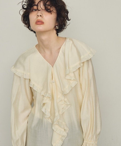 --- Trish NEW ARRIVAL TREND ITEM! --- 【2026SS COLLECTION】 BLU(LAVENDER)に近いカラー、BLK 新色登場 華やかなラッフルデザインが目を惹くフリルブラウス。フロントから襟元にかけて流れるように施されたフリルが、女性らしい柔らかさと立体感を演出します。ほんのりシアーな素材感で軽やかに揺れ、抜け感のあるVネックラインがデコルテを美しく見せてくれる一枚です。袖口にもギャザーを寄せ、ボリュームを持たせたシルエットが上品なアクセントに。デニムと合わせてカジュアルに、スカートやスラックスと合わせてフェミニンにと、幅広いスタイリングを楽しめます。 ●透け感:あり ●伸縮性:なし ●光沢:なし ●生地の厚さ:薄め --- ATTENTIO--- N ---※撮影場所やお使いのモニター環境により若干お色味が異なる場合がございます。ご了承下さい。 ※製品によっては染料の特性上、湿った状態や汗をかいた状態での長時間の放置、または摩擦により、他のものへ色移りする恐れがありますので、着用時にはご注意下さい。 ※風通しがよく、湿気の少ない日の当たらない場所で保管して下さい。 ※製品加工上、お手元に届く際ににおいが生じる場合がありますが、 ご使用を続けていく事によりにおいは軽減されます。 --- INFORMATION --- 〈商品のお気に入り登録〉 カートの右のハートをクリック!完売カラーの再入荷通知を受け取ることができます。 〈ブランドのお気に入り登録〉 ブランド名をクリック!新商品や再入荷の通知を受け取ることができます。 〈ブランド公式SNS〉 Instagram: @trish.tokyo ZOZOTOWNに掲載していない入荷情報やお得な情報なども随時更新中◎ 是非チェックしてみてください。 ※他のキャンペーンにより、期間中に価格が変動する場合があります。 SALEは予告なく終了させていただく場合もあります。 ※他のキャンペーンにより、期間中に価格が変動する場合があります。 ※セールは予告なく終了させていただく場合もあります。 ※袋梱包の為、染料による特有の匂いが抜けきれず、匂いがする場合がございますが不良品にはあたりません。 上記注意点での返品、交換はお断りします。ご了承の上お買い求めくださいませ。 ※本製品は生産過程におきまして色味、サイズ感等若干の誤差が出る場合がございます。予めご了承くださいませ。 ※ご注文いただいた予約商品のお届け時期の確認は、注文履歴ページより行えます。