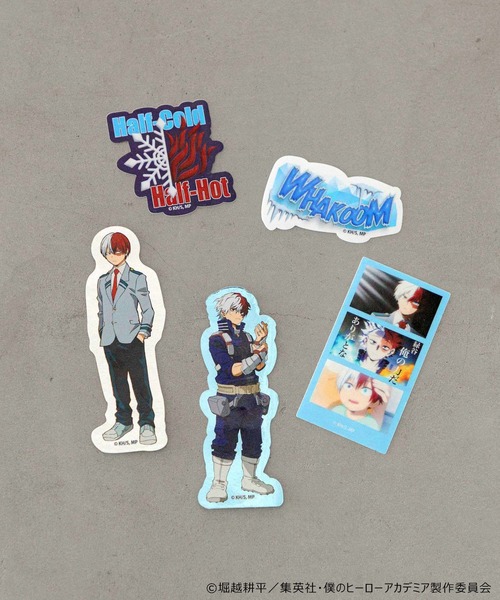 ーーーTVアニメ『僕のヒーローアカデミア』のMe%限定アイテム。名シーンやキャラクターアートを使用した、全5種入りのステッカーセット。カードやアクリルスタンドにも使用されている印象的な場面をデザイン。メインキャラクターのステッカーはキラキラのラメ仕様になっております。ーーー