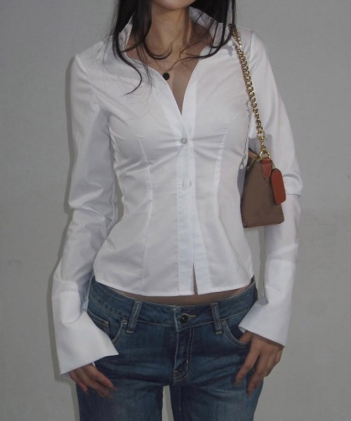 美しいシルエットのデザインシャツ☆長めにデザインされたカフスとシェイプしたウエストラインでスタイルアップ!洗練された雰囲気がシンプルなスタイリングでもおしゃれに決まります。タイトスカートでセクシーに。キレイ目なボトムスとあわせて韓国系のファッションを。カーゴパンツやフレアデニム、ロングスカートとも相性抜群。幅広いコーディネートにお使いいただけます。※モニター・環境等により実際の商品と多少色味が異なって表示される場合がございます。あらかじめご了承ください。 ※海外輸入品のため、商品の入荷時期によって色合い、生地、デザイン等に若干の違いがございます。 商品の細部仕様は予告なく変更になる場合がございます。