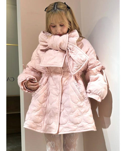 【CALNAMUR】2025 Winter pre order 【Design】 大きめのリボンモチーフが目を惹く、フェミニンな印象の中綿入りキルトコート。 表地はリボン柄のキルティングステッチが施され、柔らかな風合いとともに女性らしい華やかさを演出します。 取り外し可能な共布マフラー付きで、スタイリングに合わせたアレンジも楽しめるデザイン。 【Size】 F 【商品特徴】 透け感:なし 伸縮性:なし 生地の厚さ:厚手 サイズ感:ゆったり 裏地:裏起毛 ポケット:あり(前) -------------------------------------------- 【CALNAMUR/カルナムール】 ブランドコンセプトは『優美な野心家』 それぞれが秘めている野心や希望、憧れを洋服として生活の一部に取り入れてもらえるよう、幅広いライフスタイルの方に着ていただけるブランド。 どこか可愛く、どこかヘルシー、ファッションを楽しみたい日のとっておきのワタシにプラスのAMOURを。 クリエイティブディレクター/藤田ニコル -《お気に入り登録》でお得な情報がいっぱい- ・商品のお気に入り登録 完売カラーの再入荷通知や、ラスト1点、セールの通知をお知らせいたします。 ・ブランドお気に入り登録 新商品や再入荷など、いち早くブランドの情報を受け取ることができます。 ≪Shopping Info≫ ※掲載画像の商品の色味は、屋外や屋内の光の照射や角度により実物と色味が異なる場合がございます。 スタジオでの詳細画像をご参照ください。 ※サンプルでの撮影の為、色味や仕様の変更点ございます、ご了承ください。 ※システムの都合上、販売価格と下げ札に1円誤差が生じる場合がございます。ご了承の上、ご購入をお願い致します。 ※生産の過程で1~2cm前後の個体差が生じる場合があります。 ※ご注文いただいた予約商品のお届け時期の確認は、注文履歴ページより行えます。