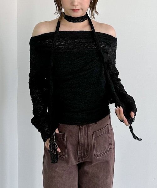 ■オフショルで女性らしく■ 秋に着たくなるレーストップス。 オフショルでより女性らしく着こなしに。 胸元がスッキリと見えるドレープ仕様。 しっかりと肩を落としてオフショルとして着こなすとより一層スッキリと女性らしく着こなせます。 全体的に伸縮性のある素材で着やすさも◎ 同素材のチョーカー付き。 着回し力の高いアイテムなのでどんなボトムスとも合わせて頂けます。 ーーーーーーーーーーーーーーー 透け感:あり 裏地:なし 伸縮性:あり 光沢感:なし 生地厚さ:普通 洗濯方法:洗濯可 ※詳しいお手入れ方法は商品についているタグをご覧ください ーーーーーーーーーーーーーーー ※ご利用のモニター環境により、実際の色味と多少異なる場合がございます。 … information … 欲しいitemをお気に入り登録(♡マークをclick) ・お買いのがし対策…完売itemの再入荷やラスト1点の情報をお知らせ ・欲しいitemをお得にget…pricedownになったらいち早くお知らせ ・スムーズ検索…ZOZOのお気に入りアイテムページで簡単checkできるから、再検索不要♪