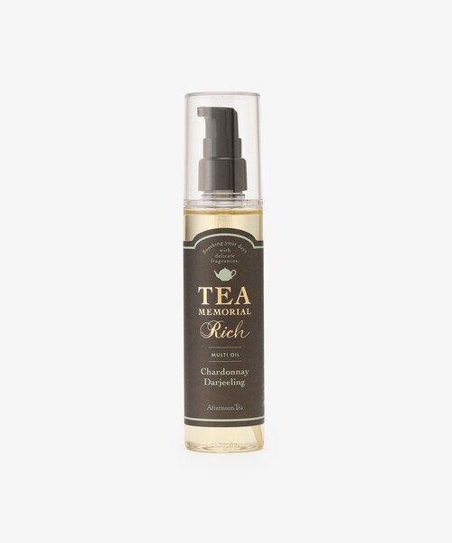 アフタヌーンティーらしいTEAをテーマにしたオリジナルの香りを楽しめる、「TEA MEMORIAL(ティーメモリアル)」シリーズのマルチオイルです。 髪にハリやツヤ、コシを与えて、肌への使用時はふっくら弾力肌に導きます。使用するたびに心地よいシャルドネダージリンの香りが広がり、気分も合わせてリラックスさせてくれそう。高級感のあるパッケージデザインで、ご自身用にはもちろんギフトにもおすすめです。同シリーズのアイテムをほかにもいくつかご用意しているので、この機会にぜひ一緒に使ってみてはいかがでしょうか。 *本品は食べられません。