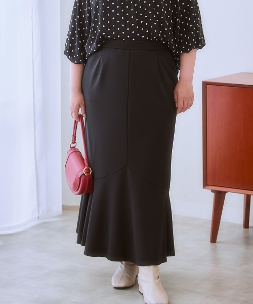 歩くたびに揺れる、軽やかなマーメイドスカート。■デザインウエストはゴム仕様なので、楽な履き心地です。両サイドにポケットが付いているので便利です。■素材落ち感のある素材で、シワになりにくく、ご自宅で洗えるので、デイリーユースにぴったりです。■おすすめのスタイリングスニーカーやブーツなど、どんなシューズとも合わせやすい丈感です。通勤や通学、お出かけなど、幅広いシーンで活躍してくれるアイテムです。<仕様>ウエスト総ゴム・ひも入 ポケット両脇透け感:なし伸縮性:あり生地の厚み:普通光沢感:なし裏地:なしポケット:なしウエスト:総ゴム季節:春・夏・秋向きシルエット:ぴったり<洗濯方法>洗濯機OK ネット使用●サイズに関して●SMILELANDは大きいサイズ専門店として、サイズ設計にとことんこだわります!着心地良くおしゃれを楽しめるよう、独自のサイズ設計になっております。そのため、他ショップ様のサイズより少し大きめに感じられることがあります。<対応サイズ>を参考にしていただき、お買い物をお楽しみください。<対応サイズ>M :ウエスト:64~69/ヒップ:91~95L :ウエスト:69~77/ヒップ:92~100LL :ウエスト:77~85/ヒップ:97~1053L :ウエスト:85~93/ヒップ:102~1104L :ウエスト:93~101/ヒップ:107~1155L :ウエスト:101~109/ヒップ:112~120※こちらはヌードサイズです。※平置きのアイテムサイズとは異なる計測方法となりますのでご了承ください。#ゆったり#体型カバー#二の腕カバー#大きいサイズ#プラスサイズ#大きいサイズレディース#M#L#LL#3L#4L#5L【気になる商品はお気に入り登録がおすすめ】▼商品のお気に入り登録完売カラーの再入荷通知や、ラスト1点の通知、セールの通知などお得な情報が受け取れます。▼ブランドのお気に入り登録新商品や再入荷など、ブランドのお得な情報をいち早く受け取ることができます。●SMILE LANDコンセプト●「好きな服だけ着ていたい!」自由なサイズ選びで楽しめるファッションを提案します。▼公式インスタグラム @la_smilelandプラスサイズモデルさんの着用コーデや動画など随時更新しております。是非チェックしてみてください♪