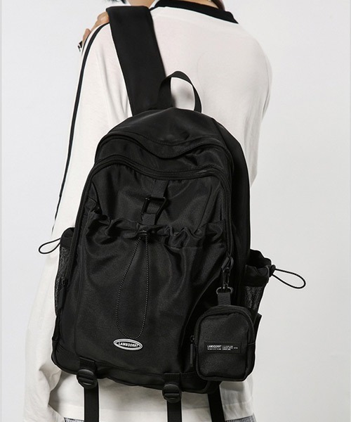 フロントのドロストポケットがアクセント! シンプルなデザインでユニセックスで使えるリュックサック 【デザイン】 ■ デザイン性と収納力を兼ね備えたリュックサック シーンを問わず活躍するユニセックスデザインのバックパック。 外側には使いやすいドロストポケットを配置し、小物をすぐに取り出せる利便性をプラス。 さらに取り外し可能なミニポーチ付きで、その日のスタイルや用途に合わせてアレンジ可能。 デイリーから旅行まで幅広く使える、機能性とデザイン性を兼ね備えた万能バッグです。 ■ ユニセックスアイテム カジュアル、ストリート、きれいめ、韓国系など、スタイルを問わない万能アイテム。 メンズ・レディースを問わない男女兼用の対応商品で、プレゼントにもオススメ。 ペアやカップルコーデのお揃いにも最適で、家族でシェアしたりと幅広く活躍します。 【ファブリック】 ■ 丈夫な生地感ながらも柔らかい肌触りの素材感 体に馴染みやすいソフトな生地でしっかりと優しくフィットして使い心地も抜群。 季節を問わない素材感でオールシーズン、マルチに活躍してくれます。 【コーディネート】 シーズンレスで使えるプラスワンアイテムとしておすすめの1点です。 メインバッグとしてもサブバッグとしても使える優秀バッグ。 カジュアル、ストリート、古着MIX、韓国系まで幅広いスタイリングで活躍します。 ユニセックスなのでカップルや友達とリンクコーデなども◎ パーカーやスウェット、シャツやジャケット、デニムパンツにも相性抜群です。 ※こちらの商品の画像はサンプルを使用しているため、実際の商品と仕様、加工、サイズ、素材が若干異なる場合がございます。 また、画像の商品は光の照射や角度により、実物と色味が異なる場合がございます。予めご了承くださいませ。 【お買い物をよりお楽しみいただくために】 ▼商品のお気に入り登録(ハートマークをクリック) 完売カラーの再入荷通知や、ラスト1点の通知、セールの通知も受けることができます。 ▼ブランドのお気に入り登録 新商品や再入荷など、いち早くブランドのお得な情報を受け取ることができます。