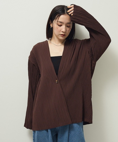 ピッチを変えた独特なプリーツが着映えを叶えるノーカラージャケット。軽量仕上げでライトに羽織って頂ける一着です。 丈感長めのゆったりとしたシルエットにフロントの一つ留めボタンがすっきりと演出。カーディガン感覚でラフに着用出来、デイリーカジュアルにも合わせていただけるおすすめのアイテムです。 透け感[ややあり] 生地の厚さ[薄手] 光沢感[なし] 伸縮性[あり] 裏地[なし] ポケット[あり] ※モデル着用画像は、光の当たり具合で色味が違って見える場合がございます。 ※お使いのモニター環境によって商品の色味が違って見える場合がございます。 ●Green Parks (fuuwa / topic / sara)● (グリーン パークス) 20以上の人気ブランドを取り扱う、全国に約320店舗展開するアパレルセレクトショップ。 ベーシックながらもさりげなくトレンドを取り入れたオリジナルブランドchocol raffine robeも展開。 ▼ 商品のお気に入り登録がおすすめです ▼ 商品ページ内のハートマークをクリック。完売時の再入荷や、最後の1点の通知、コーディネート画像がアップされたとき、お得なお値下げの際の通知を受ける事ができます。 【お知らせ】ページでも通知が確認できます。