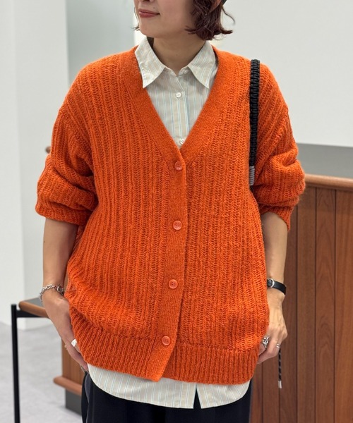 『秋の始まりに纏いたい、軽やかな透け感。大人の抜け感を演出する一枚』 ■デザイン ・デコルテを美しく見せ、シャープな印象を与える深めのVネックライン。 ・ボディラインを拾わないシルエットと、女性らしいボリュームスリーブ。 ・ヒップが半分ほど隠れる丈感で、着回し力に優れています。 ■素材 ・まるでモヘアのような、ふんわりと空気を含んだ軽い着心地が魅力のニット素材。 ・毛をブレンドすることで、秋口の肌寒さにちょうど良い暖かさをプラスしました。 ■カラー展開 ・【オフホワイト】柔らかな印象で着回し力抜群の定番カラー。 ・【グレー】知的で上品な雰囲気を纏える、大人に似合うベーシックカラー。 ・【グリーン】コーディネートの主役になる、トレンド感のあるピスタチオグリーン。 ・【オレンジ】顔周りを華やかに見せる、秋らしいこっくりとしたテラコッタオレンジ。 ■コーディネート ・ロゴTシャツとデニムに合わせた王道カジュアルから、ワンピースやきれいめスカートと合わせたフェミニンスタイルまで幅広く対応。 ・ボタンを全て留めて、Vネックのプルオーバーとして着こなすのもおすすめです。 ■サイズ感 ・全体的にゆとりを持たせたサイズ感で、インナーを選ばず楽に羽織ることができます。 ・肩のラインが落ちたドロップショルダーが、華奢見えを叶えつつ、こなれた雰囲気を演出します。 ♦itemkeyword♦ #秋服#秋アイテム#シアーニット#Vネックカーディガン#ローゲージニット#モヘアライク #羽織り#着回しコーデ#体型カバー 透け感[ややあり] 生地の厚さ[普通] 光沢感[なし] 伸縮性[あり] 裏地[なし] ポケット[なし] ※モデル着用画像は、光の当たり具合で色味が違って見える場合がございます。 ※お使いのモニター環境によって商品の色味が違って見える場合がございます。 ●Green Parks (fuuwa / topic / sara)● (グリーン パークス) 20以上の人気ブランドを取り扱う、全国に約320店舗展開するアパレルセレクトショップ。 ベーシックながらもさりげなくトレンドを取り入れたオリジナルブランドchocol raffine robeも展開。 ▼ 商品のお気に入り登録がおすすめです ▼ 商品ページ内のハートマークをクリック。完売時の再入荷や、最後の1点の通知、コーディネート画像がアップされたとき、お得なお値下げの際の通知を受ける事ができます。 【お知らせ】ページでも通知が確認できます。