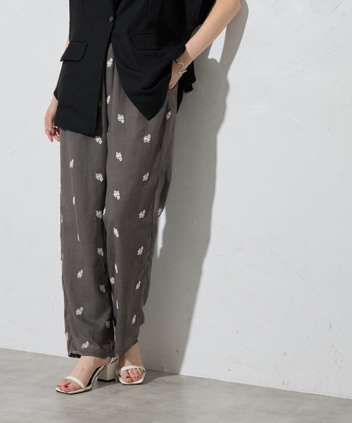 華やかな小花刺繍で大人の余裕を纏うリラクシーなのにきちんと見えするワイドパンツ■Detail小さな花柄刺繍をランダムに施した特別感のある生地を使ったワイドパンツウエストはオールゴム仕様でリラクシーな穿き心地ながら、広がりすぎないシルエットで脚のラインをすっきりと演出しますシンプルなトップスを合わせるだけでスタイリングが決まり、同素材のトップスと合わせればセットアップとしても着用可能華やかさと快適さを兼ね備えた、大人の女性にぴったりの一本ですカラーはグレーとブラックの2色展開日常から特別なシーンまで、幅広く活躍してくれます【おすすめポイント】・小花刺繍が映える上品なワイドパンツ・ウエストオールゴム仕様でストレスフリーな穿き心地・広がりすぎないシルエットで脚長&細見え効果・トップスを選ばず着回せる万能デザイン・同素材トップスと合わせて華やかなセットアップスタイルも楽しめる■Materialさらっとした肌触り爽やかな生地感です裏地:あり透け感:なし伸縮性:なし生地の厚さ:普通※詳しいお手入れ方法は商品タグをご参照ください。【Information】◆《お気に入り登録》がオススメ◆・「商品のお気に入り登録」で再入荷通知や、ラストの通知、セール通知も受け取ることが出来ます。・「ブランドのお気に入り登録」で新商品や再入荷など、お得な情報を受け取ることが出来ます※撮影時のライティング、ご覧になっているモニター・PC環境により、実際の商品と色味が異なって見える場合がございます。予めご了承をお願い致します。※ご注文いただいた予約商品のお届け時期の確認は、注文履歴ページより行えます。