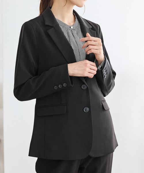 きれい魅せ上品シルエット 【デザイン】 ベーシックなテーラードカラーの2つボタンタイプ。 スカートにもパンツにも合う丈感と程よくシェイプされたウエストラインの、すっきり見えシルエット。 自分にピッタリが見つかる、S~3Lまで揃った豊富なサイズ展開。 【素材・機能】 毛羽感を抑えて上品な印象に仕上げた、柔らかな風合いで『ストレッチ』の利いたツイル素材。 環境に優しい再生ポリエステルを使用。 洗濯機で洗える『マシンウォッシャブル』と、洗濯後もシワになりにくい『イージーケア』の機能付きで、お手入れもラクラク。 【スタイル】 通勤から入学式・卒業式などのセレモニーシーンまで、きれいめスタイルに大活躍。 デニムやワンピースなどと合わせるのも◎ 同素材の商品もバリエーション豊富にご用意しています。 よりスタイリッシュに決まるセットアップでの着用もおすすめです。 ●セットアップ商品 ・1つ釦テーラードジャケット(品番:673-41-8438) ・カラーレスジャケット(品番:673-41-8440) ・2つ釦テーラードジャケット(品番:773-41-8439) ・ノーカラージャケット(品番:773-41-8441) ・ベルト付タイトスカート(品番:573-23-8921) ・ベルト付フレアスカート64丈(品番:573-23-8922) ・ベルト付フレアスカート70丈(品番:573-23-8945) ・センタープレスパンツ(股下60cm)(品番:573-73-0958) ・センタープレスパンツ(股下63cm)(品番:573-73-0959) ・センタープレスパンツ(股下66cm)(品番:573-73-0960) ※時期により未販売の場合がございます。 ●裏地/あり ※袖口部分飾りボタン ※裾後中心ベンツあり 品番:773-41-8439