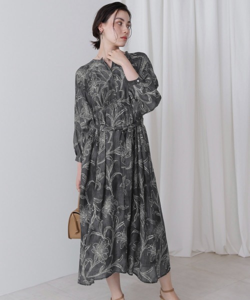 ■POINT 表情のあるシアーツイルプリント生地で、ドルマンフレアワンピースをつくりました。ワイドラグランで、上身頃はゆるっと、下身頃は程よくフレアな広がりです。ウエストのリボンは前で結んでゆるっと着こなしても、クロスして後ろで結んで、上の緩さを出した着こなしでも、リボンを垂らして着こなしたりと自由に着こなしアレンジ可能です。デニムパンツと合わせて、カジュアルな着こなしも◎ 着脱は、スキッパータイプで、上からかぶるサックタイプです。袖口の2個ボタンで、袖口サイズ調整可能。 ■FABRIC 再生繊維(セルロース)/ナイロンのシアーツイル生地。エアリーで程よいシアー感に、デニムにフラワー柄が浮き出たようなプリントしています。とても軽やかで、フェミニンな生地感です。 ………………… 透け感:あり 裏地:下身頃 裏地あり ………………… ★商品のお気に入り登録 登録すると、完売しても再入荷時に通知を受け取ることができます。 ほかにもお得な特典があるかもしれません♪ ★ブランドのお気に入り登録 新商品や再入荷などの情報を受け取ることができますので、是非ご登録ください♪