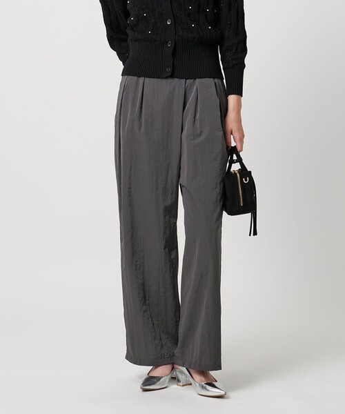 艶と立体感で魅せる、大人のパンツスタイル■デザインナイロンの微光沢が都会的な印象の一着です。アシンメトリーなタックデザインでほどよくモードな仕上がりに。様々な素材感と相性が良く、着回し力の高さもポイントです。後ろウエストはゴム仕様で快適な履き心地も魅力。■素材リサイクルナイロンタフタ素材。液流染めのほどよいシボ感と柔らかい風合いが特徴です。■コーディネートコットンシャツやリブカットソーなど、シンプルなアイテムを合わせるだけでコーディネートが決まります。寒くなってきたら、ジャケットやチャンキーニット合わせもおすすめ。============================裏地:なし透け感:なし伸縮:なし光沢感:なし機能性:はっ水加工ケア方法:手洗い可============================【注意事項】※商品に「取り扱い上の注意書き」、「洗濯表示」がございます場合は、使用前に必ずご確認ください。※商品画像は、光の当たり具合やパソコンなどの閲覧環境により、実際の色味と異なって見える場合がございます。あらかじめご了承ください。※商品の色味の目安は、商品単体の画像をご参照ください。店舗へお問い合わせの際は、全国のUNITED ARROWS各店舗まで下記の品名/品番をお申し付けください。品名:□UWSC LIMONTA TK WIDE69 品番:15141625491