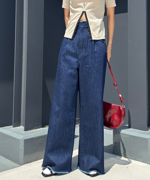 ●design裾とウエストに施された切りっぱなしデザインがこなれ感をプラスしてくれるストレートデニム。タック&ハイウエストの程よくルーズなシルエットが体型カバーしてくれます。豊富なサイズ展開なので高身長、低身長の方におすすめです。●fabric程よく厚みのある綿100%のデニム生地●styleコンパクトなトップスと合わせて、メリハリのあるシルエットを楽しむのがおすすめ。トップスをタックインしてハイウエストを強調すれば、スタイルアップ効果が際立ちます。春夏秋冬問わず、一年中着用できる1度履いたら手放せなくなるアイテムです。●colorブラック、インディゴブルー・・・・・・・・・・・・厚み:普通伸縮性:なし肌触り:普通裏地:なし透け感:なし・・・・・・・・・・・・【マルチサイズとは】豊富なサイズ展開のため、「骨格ストレート/骨格ウェーブ/骨格ナチュラル」など様々な体型の方も、自分に合った1枚が見つかる新しい洋服の買い方です。「低身長~高身長」「やせ型~ぽっちゃり」など小さいサイズから大きいサイズまで、最大56サイズご用意しています。定番アイテムから、ビッグシルエットなどのトレンドアイテムまで幅広く展開中!※マルチサイズは、ZOZOTOWNのみでのお取り扱いになります。※サンプル品で撮影しているため、ボタンやファスナーなど一部の仕様が若干異なる場合がございます。