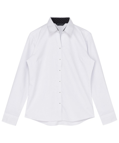 シンプルなシャツに別布を加えた メリハリあるデザインのワイシャツ。 仕様を抑えつつも洒落感あるシャツ スタイルを楽しみたい方におすすめ。 シャツのきちんと感とデザインの 程良いヌケ感が上品にマッチした一枚。 -透け防止レディース- 透け感軽減+UVカット生地でどんな 季節もお洒落な着こなしが楽しめます。 形態安定加工と綿×ポリエステル 素材で、クリーニング要らずの 自宅で取扱い楽ちんのワイシャツ。 ■仕様 カフリンクス使用可能 アジャストボタン 前身頃ダーツなし・後身頃ダーツ入り 台衿内側・カフス裏側:別布仕様 ※別布を含む濃色生地は色落ち・移染が 発生する場合があるため、お洗濯時は 衣類の組合わせにご注意ください。 【BRICK HOUSE by Tokyo Shirts / ブリックハウス バイ トウキョウシャツ】業界トップ水準を誇るノーアイロンの形態安定加工は自宅で洗濯可能でお手入れ簡単!高度な縫製技術を用いた高付加価値シャツでありながら選ぶことを気軽に楽しめます。ベーシックから多様なデザインまで幅広いバリエーションで豊富なサイズ展開で、ディテールの隅々にまで織り込んで一枚一枚丁寧に仕立てられたシャツです。