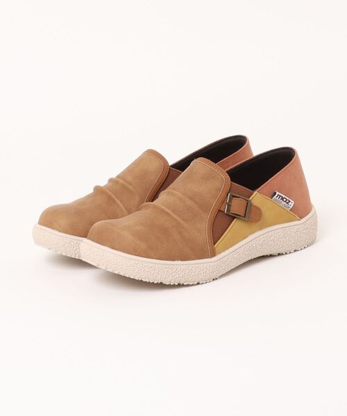 【[moz] マルチカラーデザイン 2WAYスリッポン】ほっと一息つけるような、優しい履き心地を。毎日のお出かけがもっと楽しくなるモズのスリッポン。超軽量!: 片足約140gと、驚くほど軽いので、まるで履いていないみたい。一日中歩いても疲れにくいんです。2WAYで便利: かかとを踏んでも履けるから、ちょっとそこまでのお出かけにもサッと履けて便利。おしゃれなデザイン: マルチカラーの組み合わせと、アンティーク調のシワ加工がとってもおしゃれ。足元から気分が上がります。快適な履き心地: 約8mmのふかふかインソールが足裏を優しくサポート。内側は通気性の良いメッシュ素材で、サラッと快適な履き心地です。滑りにくいソール: ほどよい弾力でしっかり曲がり、滑りにくい凹凸のあるソールだから、安心して歩けます。週末のお散歩やカフェ巡りちょっとそこまでのお買い物…履いていく靴を迷ったりします。たくさん歩くから疲れにくい靴がいいですし、それなりにカワイイのがいい。あまり悩まずにさっと履いてお出かけできる。この2WAYスリッポンは、そんな靴と思います。とにかく軽いので、たくさん歩いても足が疲れにくくて、かかとを踏んで履ける2WAY仕様だから、玄関先でサッと履いて出かけられる手軽さも魅力です。おしゃれなマルチカラーのデザインは、コーディネートにも合わせやすく、足元からおしゃれを楽しめるとおもいます。ふかふかのインソールが足裏を優しく包み込んでくれるので、履いた瞬間に、心地いいと感じられるます毎日を快適にサポートできる快適でカワイイ、モズのカジュアルスリッポンです。