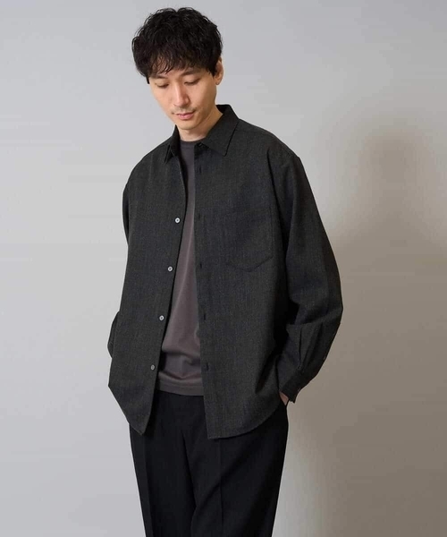 ◆秋の新作!人気のリライトシリーズ 4つの多機能素材を使用したこだわりの詰まったワイドシルエットシャツ◆ 【デザイン】 大好評の「リラックス」+「軽い着心地」にこだわったリライトシリーズより秋の新作が登場! 身幅にゆとりのあるワイドシルエットシャツ。 パーカーやスウェットもインナーに着られる絶妙なサイズ感で 羽織るだけで大人のリラックススタイルになる秋にぴったりの一枚。 様々なスタイルに使える汎用性の高いアイテムです。 【素材】 多機能なポリエステルレーヨンストレッチのツイル素材を使用。 メランジ感が高見えして、きれいめな印象に。 サラッとした肌触りの良さも魅力。 ストレッチ混で動きやすく、お手入れも簡単でデイリーユースに着用いただけます。 \嬉しい多機能素材/ ・ご自宅で気軽に洗濯機で洗える ・洗濯後のお手入れが簡単なイージーケア素材 ・ナチュラルストレッチで動きやすい ・シワになりにくくきれい長持ち◎ 【スタイリング】 秋のライトなアウター使いにもおすすめなワイドシルエットシャツは Tシャツやモックネックトップス合わせはもちろん、パーカーなどの厚手トップスにも羽織りやすい万能アイテム。 同素材のパンツを合わせたセットアップスタイルがまとまりがありトレンド感が満載。 あえて上下色違いでの着用も、着こなしの幅がぐっと広がります。 スラックス合わせできれいめな着こなしに、ゆとりのあるパンツとあわせるとカジュアルでバランスの良いスタイリングが完成します。 【秋のリライトシリーズ】 ◆ワイドシルエットシャツ:KHBJA17054 ◆Wポケットシャツ:KHBJA16064 ◆スマートジャケット:KHJKA16119 ◆セミルーズパンツ:KHLJA16064 ◆スマートスラックス:KHLJA01064 ---------------- 透け感:なし 裏地:なし 伸縮性:ややあり 光沢感:なし 生地の厚さ:ふつう ---------------- ≪お気に入り登録機能の使い方≫ ■商品のお気に入り登録(ハートマークをクリック) 再入荷通知や値下げ等、お得なご案内を受けることができます。 ---------------- ※商品画像は、光の当たり具合やパソコンなどの閲覧環境により実際の色味と異なって見える場合がございます。 商品の色味の目安は商品単体の画像をご参照ください。