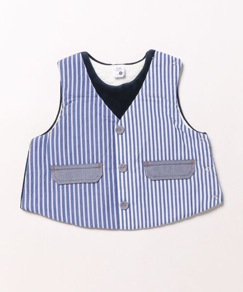 ジレを着ているように見えるベスト。Tシャツやトレーナーとの相性も抜群で、これからのイベントにも大活躍!ギフトにもおすすめです。【tickle museum】 シックなカラーとさりげないデザインで、普段着使いはもちろんお出かけ着としても活躍できるベビーブランド。 いつもかわいい赤ちゃんたちを笑顔にするアイテムがいっぱいです。
