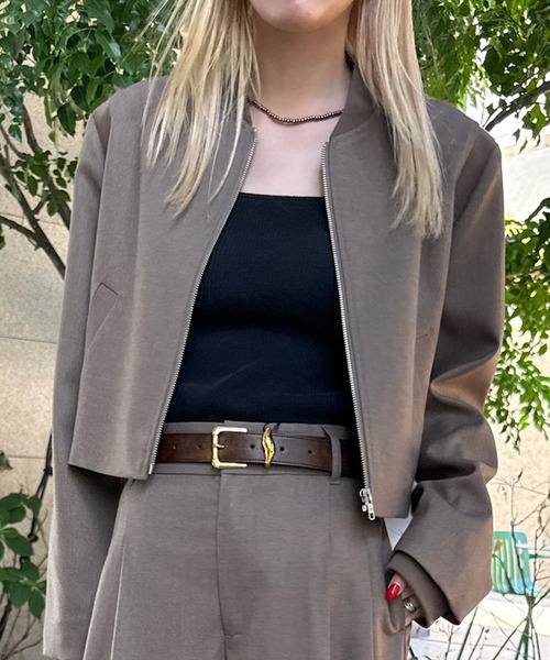 シルエットにこだわったモードテイストなショートジャケット。 モードなシルエットに肩や袖口をリブニット切り替えにしてカジュアルな要素をプラス。 配色にした裏地のカラーリングもこだわりのポイントです。 同素材の【 LOOSE STRAIGHT PANTS 】とセットアップでのご着用もおすすめ! --------------------------------- 透け感:なし 裏地:あり 伸縮性:なし 光沢感:なし 生地の厚さ:普通 お手入れ方法:クリーニング推奨 --------------------------------- ※ブランドロゴのリニューアル移行期間に伴い、モデル着用商品および商品単体画像とお届け予定の商品とで付属品のロゴデザインが異なる場合がございます。予めご了承ください。 ※商品画像はサンプルのため、色味やサイズ、素材の混率等の仕様に変更がある場合がございますので、予めご了承ください。 ※モデル着用写真につきましては、光や照明の加減により、実際よりも色味が異なって見える場合がございます。商品の色味は、商品単品の画像をご参考ください。 また、使用しているパソコンのモニターやスマートフォン等の設定により、現物と画像の色味が若干異なる場合もございます。予めご了承ください。 ▼ デリケート素材 この製品は大変デリケートな素材を使用しております。素材の特性上、引っ掛かりや縫目部分の糸抜けが生じることがありますので、次の点にご注意下さい。 着用中はバッグ・ベルト・周囲の壁等の表面の粗い物との強い摩擦や接触にお気を付け下さい。 時計や指輪・ネックレス等のアクセサリー類は、着用されてからお付けになることをおすすめいたします。また、着用中もお気を付け下さい。 サイズ的にゆとりを持ってお召しになることをおすすめいたします。