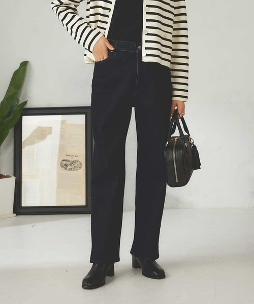 ◆定番デニムシリーズに新色ブラックが登場◆ 【デザイン】 ・定番人気のストレートデニム ・細すぎず太すぎないストレートシルエットで美脚効果も◎ ・ストレッチ入りで履き心地も抜群 ・定番のブルー、インディゴ、新色のブラックの3色展開 ・ブラックデニムは加工を控えめにして カジュアルもきれいめにも合わせやすいよう仕上げました 【素材】 ・ストレッチが効いた素材ではき心地抜群 ・ロングシーズン着用可能なデニム 【コーディネート】 合わせやすいシルエットで、ニットやスウェット、シャツ、ブラウスなど 幅広いアイテムと好相性。 新色のブラックはきれいめなスタイリングにもおすすめ。 -------------------- 透け感:なし 裏地:なし 伸縮性:あり 光沢感:なし 生地の厚さ:ふつう -------------------- ≪お気に入り登録機能の使い方≫ ■商品のお気に入り登録(ハートマークをクリック) 再入荷通知や値下げ等、お得なご案内を受けることができます。 -------------------- ※商品画像は、光の当たり具合やパソコンなどの閲覧環境により 実際の色味と異なって見える場合がございます。 商品の色味の目安は商品単体の画像をご参照ください。 ※34(XSサイズ)・42(XLサイズ)はWEB・一部限定店舗での販売です。