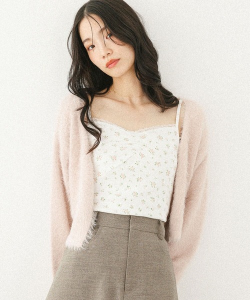ーーー 【デザイン】 ショート丈のシャギーカーディガンと 花柄のキャミソールがセットになったアイテム。 単品使いはもちろん、1着でコーデが決まるので 季節の変わりめのスタイリングにおすすめ◎ ーーー 【スタイリング】 デイリーコーデからデートまで幅広いシーンに◎ ミニボトムにブーツを合わせて秋冬らしい 上品なスタイリングが可愛い! ※屋外の光や照明の当たり具合で、実際の商品と画像の色味に違いが発生する場合がございます。 ※サンプルにて撮影をしておりますので、実際の商品とは仕様や加工・サイズ等が若干異なる場合がございます。 --------------------------------------------------------- ▼気になるアイテムはお気に入り登録がおすすめ!▼ 気になる商品は♡をクリックしていただくと、 ・在庫残りわずか ・再入荷 ・セールの情報 などの通知を受け取ることができます。 ▼ブランドのお気に入り登録も!▼ 新商品や再入荷、セール、クーポンの配布など、 いち早くお得な情報を受け取ることができます。 ぜひご登録ください♪