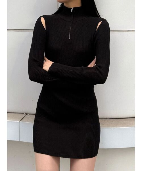 ジップとカットアウトで魅せるエッジの効いたニットワンピース ■デザイン 形はベーシックですが、ジップとカットアウトデザインがポイント。 プレーティングリブで立体的に見え、ボディラインを拾いすぎない綺麗なシルエットが特徴です。 フロントジップを開けて抜け感を出すのもおすすめです。 アームホールのカットデザインがさりげない肌見せで女性らしさもあり、モード感もあるEMODAらしい一枚です。 ■スタイリング タイトなサイズ感なので、 フェイクスエードブルゾンやボアカラーデニムブルゾンのようなボリュームのあるアウターと合わせたメリハリのあるスタイリングがおすすめです。 足元は新シルエットのルーズフレアカバーフィットブーツと合わせるとより今季らしい印象になります。 ※着用画像はフラッシュの加減で実際の製品と色味等が異なる場合がございますので、生地のズームアップ画像をご確認ください。 ※ご利用の端末画面の設定により実際の商品と色味が異なる場合がございます。 【商品特徴】 透け感:なし 伸縮性:ややあり 生地の厚さ:普通 サイズ感:細身 裏地:なし ポケット:なし