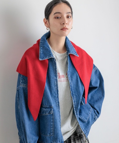 ■デザイン■コンパクトなハイゲージ織りの、トレンド感のあるトライアングル型ストール。アウターの上から肩にかけたり、そのまま首にくるっと巻いたり、頭に巻いたりと何通りも楽しめます。
