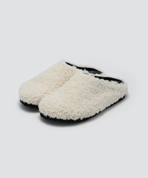 程よいボリュームと厚みのあるソールが特徴の、リラックス感漂うゴム底木型BILBAO(ビルバオ)。足裏に沿う立体的なフットベッドで、長時間の着用でも疲れにくい快適な履き心地を実現します。アッパーは、くるんとした巻き毛が特徴的な、フェイクのカーリーファー。見た目にも柔らかく、触れると弾力のあるボリューム感が、温かみと豊かな表情を生み出します。愛らしいルックスながら、毛足の密度とマットな質感が甘さを抑え、大人のスタイルにも馴染むバランスに。直営店限定商品です。