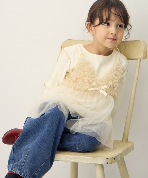 ふわふわしたプードルファー×チュールmixのキャミが目をひく長袖トップス2点セット。中のトップスはメロー配色がポイントで、1枚だけでも使えるデザイン。キャミは肩紐調整可能なのも嬉しい。リンクコーデにもおススメです◎【生地の伸縮性】あり【透け感】キャミありトップスなし【裏地】なし【生地の厚み】ふつう【コーデ合わせアイテム】オフホワイト…210558 タックコクーンデニムパンツチャコール①…210557 カットジャガードフレアパンツチャコール②…210561 ウエストフリル バルーンスウェットパンツ※ご覧のモニター環境や撮影環境により実際の商品と多少色味が異なって見える場合がございます。●ブランド紹介●"ママも欲しいトレンドこども服"ファッション好きのママのためのトレンド感たっぷりのスタイル。レディーストレンドをこども服に落とし込んだデザインで、ママもキッズもいっしょに楽しめるファッションをご提案致します。【お気に入り登録がオススメ!】●商品のお気に入り登録「在庫残りわずか」の通知や、「完売カラーの再入荷」、「セール」の通知を受けることができます。●ブランドのお気に入り登録新商品や再入荷等、ブランドのお得な情報を受け取る事が出来ます。※他のキャンペーンにより、期間中に価格が変動する場合があります。※セールは予告なく終了させていただく場合もあります。※ご注文いただいた予約商品のお届け時期の確認は、注文履歴ページより行えます。