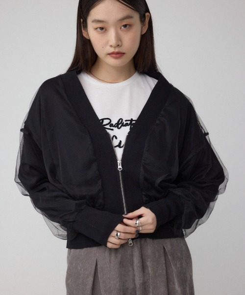 ■チュールドッキングニットカーディガン ■ポイント ボリュームのあるチュールギャザーとスッキリとしたVネックとダブルジップを組み合わせ、甘すぎない大人可愛い印象に仕上げました。 ■ディテール ゆったりとしたサイズ感とクロップド丈で、スタイルアップ効果も抜群。 ■スタイリング 腰まわりがスッキリとしたワイドリブ使いでボトムを選びません。 VネックからロゴTを覗かせたカジュアルコーディネートはもちろん、きれいめインナーを合わせてフェミニンな着こなしもできます。 ■生地 ドライなタッチの素材と、伸縮性のある素材をプレーティングして編み立てています。 清涼感と伸びのある快適な着心地が特徴です。 繊細なチュールをドッキングし、異素材使いをしています。 透け感:なし 裏 地:ニットとチュールの2枚仕立て 伸縮性:あり 光沢感:なし [注意事項] ※画像の商品はサンプルです。実際の商品と仕様、加工が若干異なる場合があります。 ※画像の商品は光の照射や角度、お使いのモニター環境により、実物と色味が異なる場合がございます。 ※着用、お取り扱いの際は、アテンションタグをご確認ください。 [お気に入り登録のおすすめ] ■商品のお気に入り登録 お気に入りアイテムの再入荷・在庫1点などの通知を受け取ることができます。 ■ブランドのお気に入り登録 新作アイテムの入荷や人気アイテムの再入荷、おすすめトピックスなど、いち早くブランドの情報を受け取ることができます。 AUTUMN & WINTER ( 秋服 / 冬服 ) ※こちらの商品はAZUL BY MOUSSY独自の採寸方法となっています。本サイトのサイズガイドと採寸方法が異なる場合がありますのでご了承ください。
