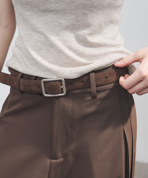 ■マットシルバーバックル スエードレザーベルト マットなスエードの質感が上品なベルト。ほどよい太さでウエストマークのアクセントになり、シンプルなバックルがどんなアイテムとも好相性。ワンピースやスカートには洗練さを、パンツにはモード感をプラスできる万能デザイン。大人の秋冬コーデにさりげなく取り入れたい一本。 デザインポイント ・ウエストラインを引き締めるスリムベルトデザイン ・上品で落ち着いた印象を与えるマットなスエード調質感 ・本革ならではの高級感と耐久性 ・幅広いスタイリングに対応できる高い実用性 【Fabric】 上質な牛床革を厳選使用 ・スエードライクな柔らかな風合い ・丈夫で耐摩耗性に優れ、長く愛用可能 ・汚れが付きにくく、お手入れも容易 ・ベルト穴を増設可能で、フィット感を自在に調整 ・防錆加工を施したメタルパーツで耐久性も安心 【tageechita】 「in time」 実用美学を重視しつつ、ハイブリッドスタイルとミニマリストスタイルのバランスを取り入れ、唯一無二のオリジナルスタイルを発信します。 時間の流れに応じたコレクションを提案するブランドです。 ◆商品のお気に入り登録(ハートマークをクリック)していただきますと 完売カラーの再入荷通知や、完売間近の通知、セールの通知も受けることができます。 ◆ブランドのお気に入り登録 新商品や再入荷など、いち早くブランドのお得な情報を受け取ることができます。 ★instagramアカウントにて最新情報更新中!《 @tageechita_jp 》にて検索≪お気に入り登録のお願い≫