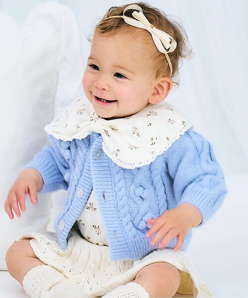 apres les cours(アプレレクール)のカーディガン・ボレロ「【洗える】ポンポンニットベビーカーディガン」は、肌寒い時にサッと羽織れる便利アイテム◎着回し力抜群で1枚あると大活躍!インナーとの重ね着も楽しんで* 【取り扱い表示】 40℃を上限に洗濯機で洗濯、デリケートアイテムモード、ネット使用、漂白剤禁止、色物は同系の色と一緒に、洗濯後直ちに取出し、タンブル乾燥不可、日陰で平干し、アイロン禁止、商業ドライクリーニング不可 【ご注意事項】 この商品は着用中の摩擦や洗濯により毛羽の乱れ、毛羽脱落、毛玉が生じることが有ります。できるだけ美しくご利用頂く為に次のことにご留意下さい。 ○毛玉は毛玉取り器またはハサミで丁寧にカットして下さい。 ○毛羽が他に付着した際はテープやブラシで除去して下さい。 ○他の製品とは洗わず、単独でお洗濯して下さい。 ○タンブル乾燥はお避け下さい。 素材の特性上、過度の力(引っかけや摩擦等)がかかることにより、ループが飛び出したり、ほつれることがあります。 出来るだけ美しくご利用頂くために次のことにご留意下さい。 ○ 過度の力がかからない様に着用、着脱には十分ご注意下さい。 ○ 押し洗いを推奨いたします。 ○ 形を整えてから干して下さい。 ※商品により多少の誤差が生じる事がございます。あらかじめご了承下さい。 ※ご使用のパソコンやブラウザの環境により、実際の色とは多少異なる場合がございます。 ※モデル着用写真についてはイメージの為、実際の商品とカラーや仕様が異なる場合がございますので、商品画像をご覧ください。 【 apres les cours -アプレレクール- 】 「キオク いろどる、こどもふく。」 大切なキオクを彩る、お気に入りの一枚。 「アプレ レ クール」は独自の色づかいやテキスタイルで日々をトクベツに過ごせる そんな「一枚」をお届けします。