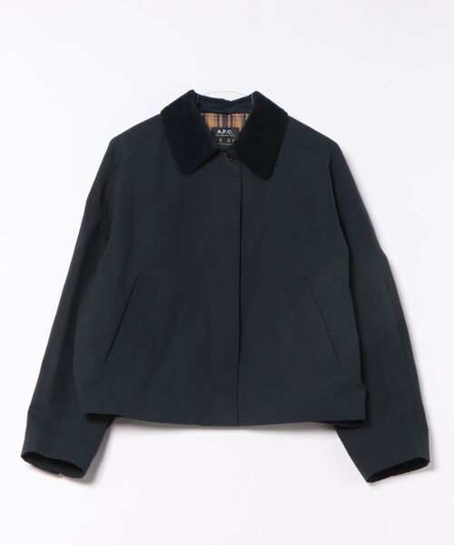 *スロッピングショルダー. *サイドポケット2つ. *フェイクホーンボタンの比翼仕立て. *ブルーとイエローのチェック裏地付.