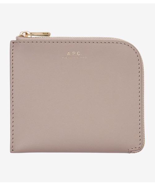 スムースレザーのコインケース.*丸い右コーナー. *トップから右サイドのコインポケットまでファスナー留め. *センターポケットで仕切られたコンパートメント. *前にA.P.C.ロゴ刻印入り. *ゴールドメタルの金具.