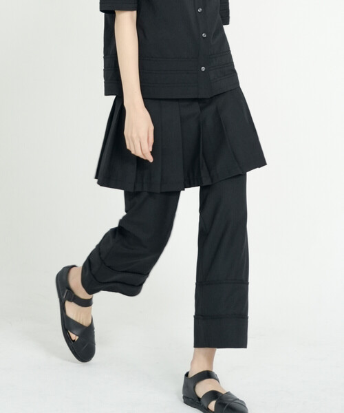 <デザイン>- レイヤードタイプのミニスカート- 端正なプリーツディテール- サイドジップ<素材>- 適度なハリ感のあるポリエステル素材- 裏地なし※着用、お取り扱いの際は商品についておりますアテンションタグ、洗濯ネームを必ずご確認ください。※モデル撮影画像は、光の当たり具合やパソコンなどの閲覧環境によって、実際の色味と異なって見える場合がございます。商品の色味は商品単体で撮影した詳細画像をご参照ください。メーカー品番:lyd plts short skirteunoia | ユノイア2014年に設立された韓国のブランド。‘’eunoia‘’はギリシャ語で「美しい考え」という意味。韓国の彫刻、建築、陶器、瓦などによく見られる、なだらかな曲線からインスピレーションを受け、黒と白を基調とした繊細なスタイルを表現。豊かなシルエットとクラシックかつユニークな、美しいスタイルを展開しています。
