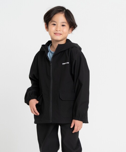 《デザイン》 トレンド感と機能性を兼ね備え、 季節の変わり目にぴったりなマウンテンパーカーです。 撥水加工を施した素材を使用しており、 ちょっとした雨の日やアウトドアにも安心してお使いいただけ、 フード付きで実用性も高く、通学からお出かけシーンまで幅広く活用いただけます。 袖口はゴム仕様で着脱のしやすさはもちろん、 冷たい風の侵入も防いでくれる機能的なつくりとなっております。 裾のゴムスピンドルでシルエットの調整も可能で、 ゴムひもが外に出ない安全仕様! スタイルに変化をつけながら防風性を高めていただけます。 胸元にロゴ刺繍を入れて、さりげないおしゃれをプラスしています。 シンプルなデザインなので男の子女の子問わず着て頂けます。 《素材》 さらっとした肌ざわりが心地よい、 平織りのポリエステル素材を使用しています。 収縮性のあるポリエステル糸を使用しているため、 自然なストレッチ性があり、動きやすくアクティブなシーンにもぴったりです。 軽やかで通気性にも優れており、汗ばむ季節でも快適に着用頂けます。 さらに撥水加工を施しているため、水や汚れを弾きやすく、 急な天候の変化や水回りでも安心してご着用頂けます。 快適さと実用性を兼ね備えた素材です。 ※撥水(水をはじきやすい)加工は永久的なものではなく、 洗濯や着用を繰り返すうちに効果が低下しますので予めご了承ください。 ご自宅で洗濯機洗い可能です。 ※画像の商品はサンプルとなりますので実際の商品と仕様、加工、サイズが若干異なる場合がございます。 ※こちらの商品はFIVE FOXes独自の採寸方法となっています。 本サイトのサイズガイドと採寸方法が異なる場合がありますのでご了承ください。