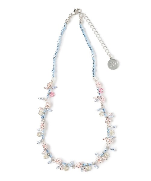華奢で女性らしい首元に ■デザイン きらめくフラワーモチーフのネックレス。顔周りをぱっと明るく見せてくれる、心弾むデザインです。 同デザインのピアス(61-42-3671-279)、ブレスレット(61-42-3672-279)のご用意もございます。 ■サイズ 長さ調整可。 ■素材 ガラス 真鍮 ■メーカー番号 NO.3363 【アクセサリー・小物雑貨の取り扱いについて】 ・貴金属は、体質により、かゆみやかぶれを生じる場合があります。 ・皮膚に異常を感じた場合は直ちにご使用を止め、専門医にご相談下さい。 ・家事やスポーツ、就寝時や乳幼児の世話をする時などは、身体に危害を及ぼす場合がありますので着用を避けて下さい。 ・熱伝導が高いので、高温の場所や寒冷地での着用は火傷や凍傷の原因となりますので着用を避けて下さい。 ・乳幼児が誤飲しないように、保管は十分にご注意下さい。 LOTUS PINK/ロータスピンク 毎シーズン好きなイメージやトレンドを、ディテールや素材、色で表現しているブランド。遊び心のある細やかなパーツ使いが、女ごころをくすぐります。