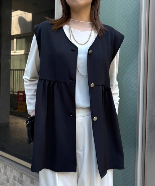 大人気により再販決定!【インフルエンサーさわゆい企画アイテム】-商品ポイント- ・ふんわりとウエスト位置から広がるペプラムデザインが気になる腰回りをしっかりとカバーしてくれます。・ブラウスやゆったりとしたTシャツ・カットソーを合わせても着ぶくれしないサイズ感がうれしいポイント◎・ゴールドボタンがアクセントになり上品で華やかな印象に。・デイリー使いはもちろん、オケージョンやオフィスシーンにも幅広く活躍します。・別アイテム【ペプラムブラウス】と合わせて着ていただくのもおすすめです。ーマテリアルー■透け感:なし■裏地:あり■伸縮性:なし■光沢感:ややあり【Q&A】Q:しわになりますか?A:しわになりにくい素材なので気にせずお召いただけます。Q:ニットとも合わせれますか?A:アームホールがゆったりしているので、ニットとも着用できます。ー洗濯方法ー手洗い可能ー注意事項ー商品の画像はできるだけ実物に近い色味で掲載しておりますが、ご覧になるモニターや照明の環境により、実際の色味と若干異なって見える場合がございます。あらかじめご了承くださいませ。・画像の商品はサンプルです。実際の商品と仕様、加工が若干異なる場合があります。・サイズ表記はあくまで目安となります。__________________________________※取り扱いについては、商品についている品質表示でご確認ください。※照明の関係により、実際よりも色味が違って見える場合があります。またパソコン・スマートフォンなどの環境により、若干製品と画像のカラーが異なる場合もございます。予めご了承ください。※詳細画像の色合いをご参照ください。予めご了承ください。__________________________________【お買い物をよりお楽しみいただくために♪ 】▼ 商品のお気に入り登録お気に入りアイテムのお値下げ・再入荷・在庫ラスト1点など通知を受けることができます。▼ブランドのお気に入り登録Jena espace merveilleuxの新商品や再入荷、セール、クーポン配布などお得な情報を受けることができます。