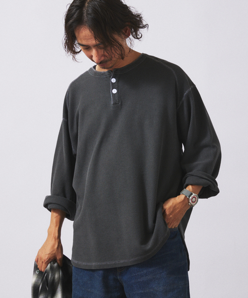 BACK PIQUE H/N 3/4SLEEVE好評の「バックピケシングルステッチTシャツ(25071464202030)」から半端丈のカットソーが登場。綿素材を使用し製品染めと特殊加工によってヴィンテージライクな風合いを引き出したカットソー。ワッフル調の鹿の子(ピケ)素材で、さりげない立体感と通気性をプラス。シンプルながらも異素材のコントラストが映えるデザインに仕上げました。バックピケシングルステッチTシャツ同様、袖・裾ともにヴィンテージTシャツのディテールとして人気のシングルステッチを採用。細部にまでこだわった仕様がさりげないポイントに。袖丈は、7~8分丈の半端丈の袖とゆったりとしたシルエットで、1枚で着ても雰囲気の出るアイテムです。ロンTとTシャツの中間着としても、ロングシーズン着用できるアイテムです。**********************裏地:なし伸縮性:あり光沢感:なし生地の厚さ:普通**********************【スタッフ着用コメント】《スタッフH》身長:170cm/体重:60kg/体型:中肉中背/普段サイズ:M/着用サイズ:Lサイズ感:トレンド感のあるゆったりとしたオーバーサイズ。素材感:ドライタッチでサイズ感と相まって通気性がよく、バランスが◎着心地:程よい厚みで、ロングシーズン着用可能です。**********************《画像についてのご注意》※照明の関係により、実際よりも色味が違って見える場合があります。またパソコン・スマートフォンなどの環境により、若干製品と画像のカラーが異なる場合もございます。※商品の色味は、商品アップ画像をご参照ください。《商品のお気に入り登録について》「カートに入れる」または「予約する」右側のハートマークを押していただくと、再入荷、残り1点、セールなどの通知を受け取ることが出来ます。本体:洗濯機洗い(ネット使用)