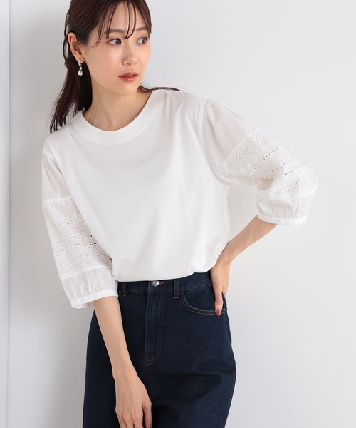 袖部分のレース使いが華やかな異素材切り替えプルオーバー【機能/素材】さらっとした素材感のカットソー生地を身頃に使用。袖は微光沢の布帛で切り替え、部分的にレースを重ねています。【デザイン】暑さの残る初秋でも、快適に着られる7分袖プルオーバーです。素材を切り替えることで、着心地の良さとデザイン性を叶えました。【お勧めスタイリング】デニムスカートに合わせてトレンド感をアップ。前身頃はシンプルで、ロングネックレスも映えます。【GALLORIA /ギャロ―リア】ベーシックだけじゃ物足りない、ほどよくトレンドを取り入れ シーンレスにきちんと見える。そんな願いを叶えてくれる、いまの空気感をまとった大人のデイリー服「GALLORIA」買いやすいプライスで、バリエーション豊富に揃うライフスタイルに寄り添うコレクションを展開します。◆Instagram:@galloria.sns公式Instagramでは最新情報を定期的に更新中!フォローしてお得な情報をゲット!■商品のお気に入り登録のおすすめ■完売カラーの再入荷通知、ラスト1点、お得なクーポンやお値下をお知らせします。■ブランドのお気に入り登録のおすすめ■新商品や再入荷のお知らせ等、ブランドのお得なクーポンやお値下をお知らせします。
