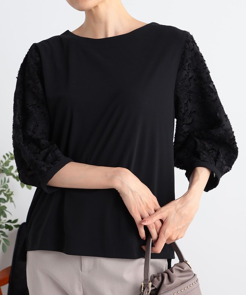 華やかさときちんと感を纏った快適なトップス 【機能/素材】 身頃はクリーンな表面感のジャージー素材を使用。 袖はシアーなレース生地で切り替えました。 【デザイン】 異素材切り替えのコントラストを楽しめる、7分袖のプルオーバーです。 身頃はゆとりがあり、前後差のある裾はサイドスリットが施されています。 バックネックにもスリット入り。 【お勧めスタイリング】 ナロースカートに裾インで、きちんとしたお出かけスタイルに。 ラフなジーンズにもコーディネートできます。 【GALLORIA /ギャロ―リア】 ベーシックだけじゃ物足りない、ほどよくトレンドを取り入れ シーンレスにきちんと見える。 そんな願いを叶えてくれる、いまの空気感をまとった大人のデイリー服「GALLORIA」 買いやすいプライスで、バリエーション豊富に揃う ライフスタイルに寄り添うコレクションを展開します。 ◆Instagram:@galloria.sns 公式Instagramでは最新情報を定期的に更新中!フォローしてお得な情報をゲット! ■商品のお気に入り登録のおすすめ■ 完売カラーの再入荷通知、ラスト1点、お得なクーポンやお値下をお知らせします。 ■ブランドのお気に入り登録のおすすめ■ 新商品や再入荷のお知らせ等、ブランドのお得なクーポンやお値下をお知らせします。