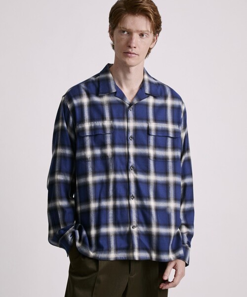 【Design】程よくゆとりのあるボックスシルエットは、リラックスした印象でレイヤードとしても着用しやすいデザインになっています。落ち着いた配色のオンブレチェック柄を活かしたミニマルなデザインは、汎用性が高い大人のオープンカラーシャツに仕上がっています。【Point】生地、縫製ともに日本製にこだわったクラシックなオープンカラーシャツです。【Material】程良いふくらみと適度な落ち感が特徴的なコットンレーヨンの先染めオンブレチェックに軽い起毛加工を施したフランネルなので上品さの中に無骨さを感じる素材になっています。【Composition】組成: コットン 58% レーヨン 42%【Country of origin】原産国:MADE IN JAPAN【Size Specs】S/ 着丈 68 | 肩幅 49 | 身幅 61.5 | そで丈 60M/ 着丈 70 | 肩幅 51 | 身幅 63.5 | そで丈 61L/ 着丈 72 | 肩幅 52 | 身幅 65.5 | そで丈 63XL/ 着丈 74 | 肩幅 54 | 身幅 67.5 | そで丈 64【モデル情報】オリーブ:身長179cm 着用サイズ L sizeブルー:身長186cm 着用サイズ L size※画像の商品はサンプルとなります。 ※実際の商品と色味、仕様、加工、サイズ、素材等が若干異なる場合がございます。Item Code:BBG65150